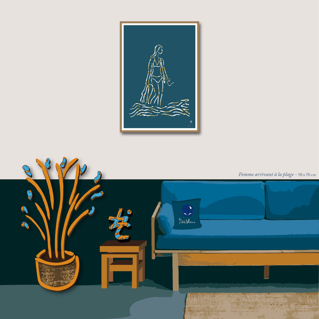 AF03 "Femme arrivant à la plage" 50x70 cm