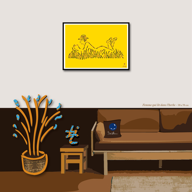 AF10 "Femme qui lit dans l'herbe" 50x70 cm